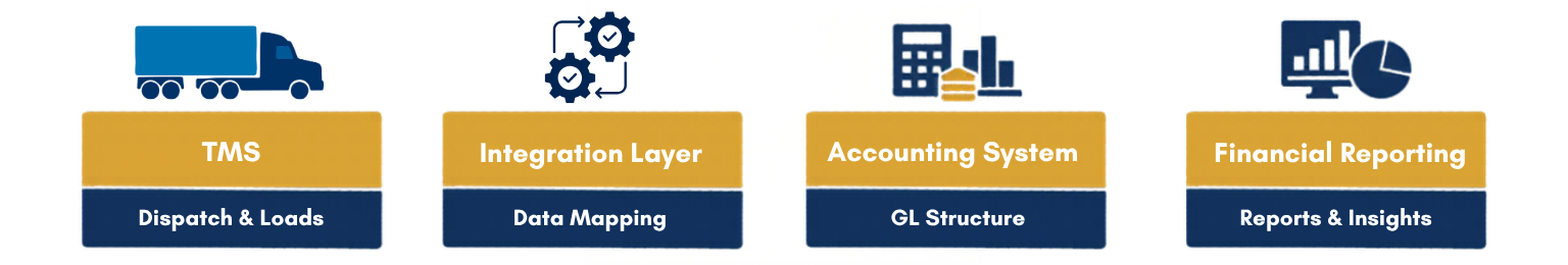 As the business evolved, managing data across operational and financial systems became more difficult. The company was implementing a new general ledger platform with a significant change to their account structure. Support was required to change the sources/inputs of data from the Transportation Management System (TMS) and build out the integration to the new accounting system to ensure financial data flowed into the new account structure accurately where reported financial results aligned with real-world operations.